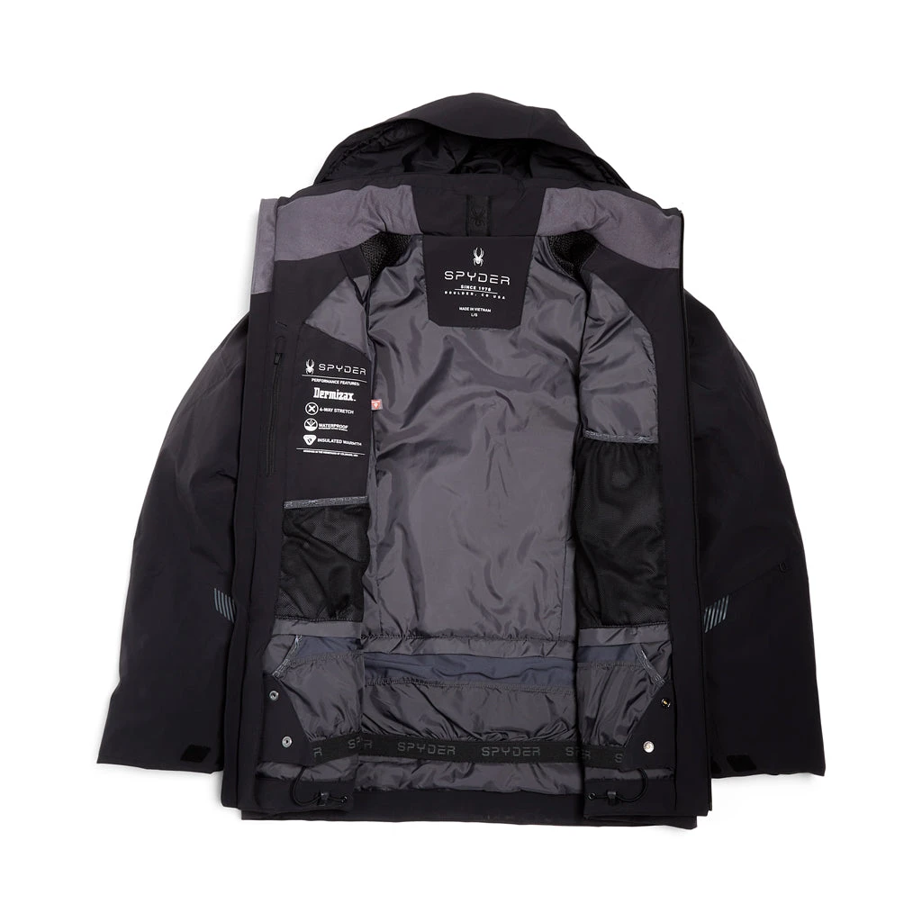 It’s pretty hard to fix what isn’t broken, and the Leader remains a fan favorite year in and year out. We did manage to perfect one of our best-sellers with our brand-new 360° stretch EXO SHIELD technology and 20k DERMIZAX® laminate, made with recycled nylon. We’ve done this while keeping all of the signature Spyder features people have come to know and love in tact, including PrimaLoft® Silver Eco Insulation, YKK® AquaGuard® Zippers, and our Silver Chassis interior with targeted interior stretch panels. With these upgrades, this jacket continues to lead the pack.